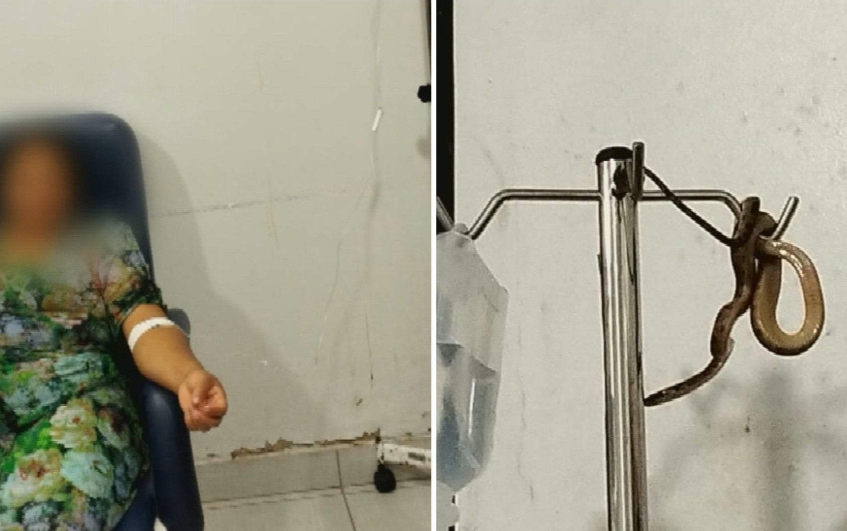 Cobra cai do teto em cima de suporte de soro em unidade de saúde de Goiás