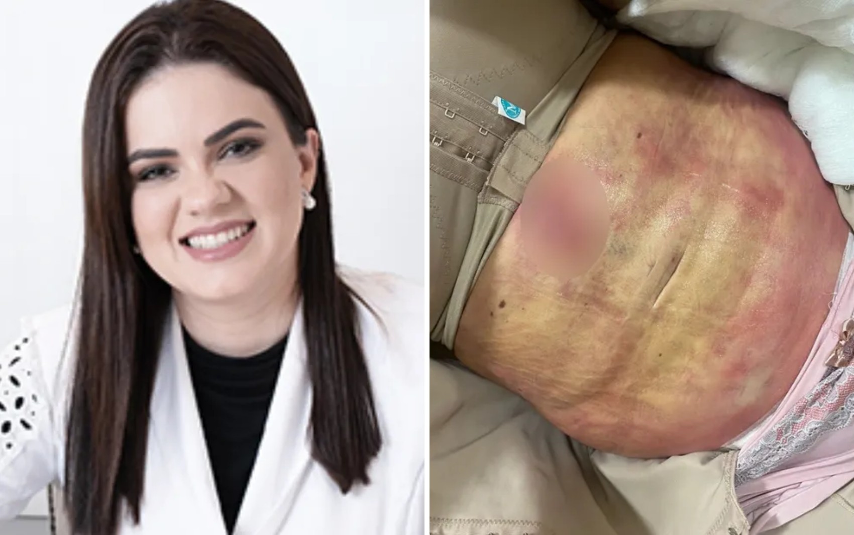 (Foto: Reprodução) Decisão manteve sentença de condenação realizada em fevereiro, que diz que Kárita Rabelo teve infecção generalizada e 'necrose de parte da pele como consequência da lipoaspiração'. Defesa avalia viabilidade de novo recurso. Médica Lorena Duarte Rosique e local onde foi realizada cirurgia plástica de Kárita Rabelo, em Goiânia